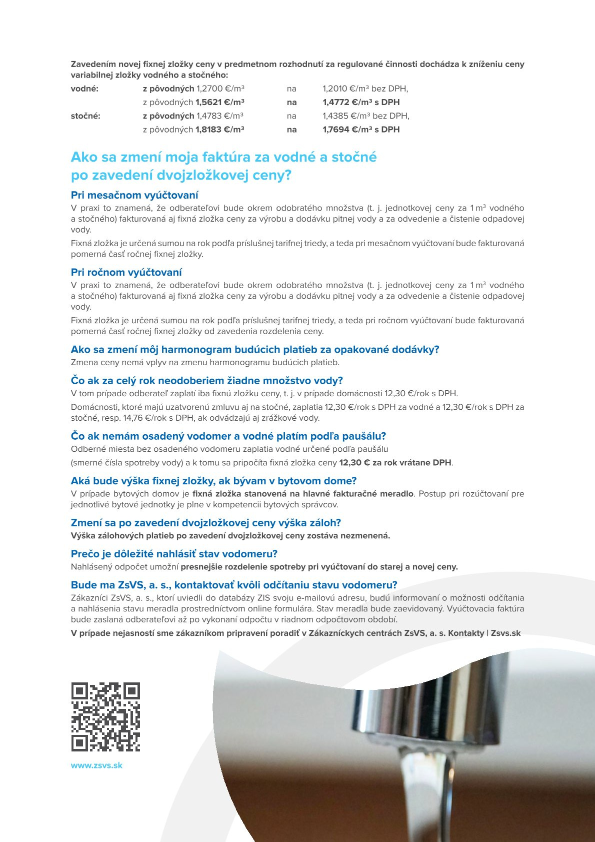 Oznam ZsVs a.s. o zavedení dvojzložkovej ceny